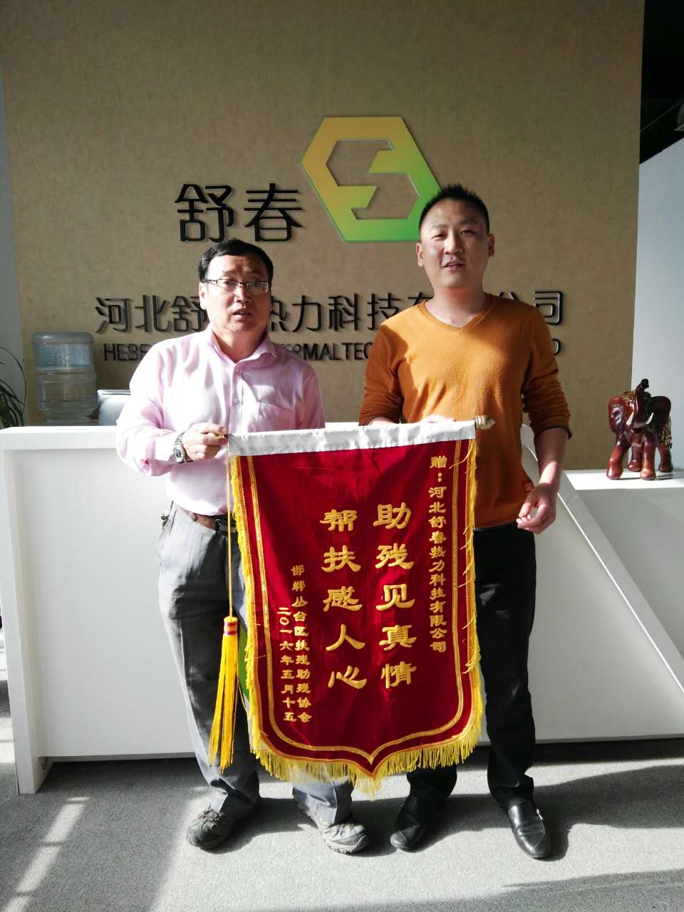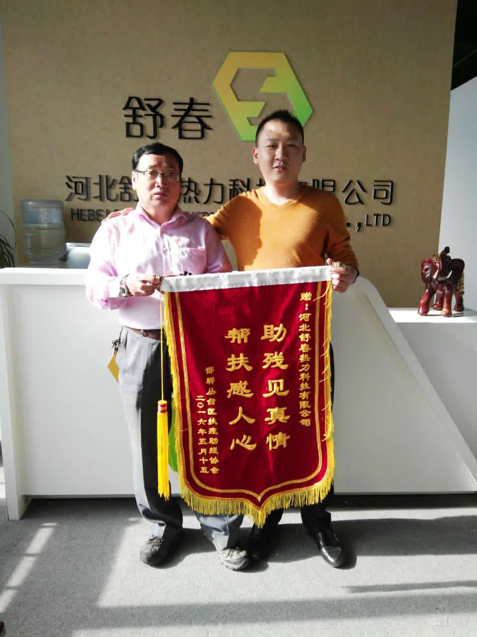 舒春送溫暖 助殘在行動 為深入貫徹黨的十八大和十八屆三中、四中、五中全會精神,認(rèn)真落實省市關(guān)于加快推進小康社會進程的要求,推進“全國慈善城市”“全國文明城市”創(chuàng)建進程,在全社會弘揚人道主義精神,倡導(dǎo)扶殘助殘的社會風(fēng)尚,推進我區(qū)殘疾人事業(yè)全面發(fā)展,河北舒春熱力科技有限公司董事長馬建崗攜邯鄲市綠色環(huán)保聯(lián)合會副會長電供暖委員會秘書長焦琳一起走進叢臺區(qū)肢殘協(xié)會。
