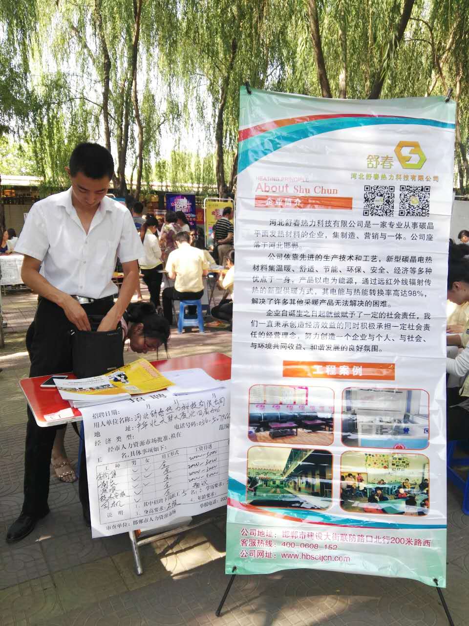 “播種希望,圓你夢(mèng)想”系列人才招聘會(huì)暨邯鄲職業(yè)技術(shù)學(xué)院專場(chǎng)人才招聘會(huì)圓滿召開 2016年6月16日星期四,由邯鄲勞動(dòng)就業(yè)服務(wù)局、邯鄲職業(yè)技術(shù)學(xué)院、邯鄲市就業(yè)促進(jìn)會(huì)共同主辦的邯鄲市2016年“播種希望,圓你夢(mèng)想”系列人才招聘會(huì)暨邯鄲職業(yè)技術(shù)學(xué)院專場(chǎng)人才招聘會(huì)圓滿召開。招聘會(huì)吸引了邯鄲市眾多知名企業(yè)前來(lái)招賢納士,也吸引了包括邯鄲職業(yè)技術(shù)學(xué)院的應(yīng)屆生和慕名而來(lái)的社會(huì)求職人員。我公司也到場(chǎng)參與招聘,為邯鄲市大學(xué)生就業(yè)助力。與會(huì)人員熱情高漲,不懼高溫炎夏。