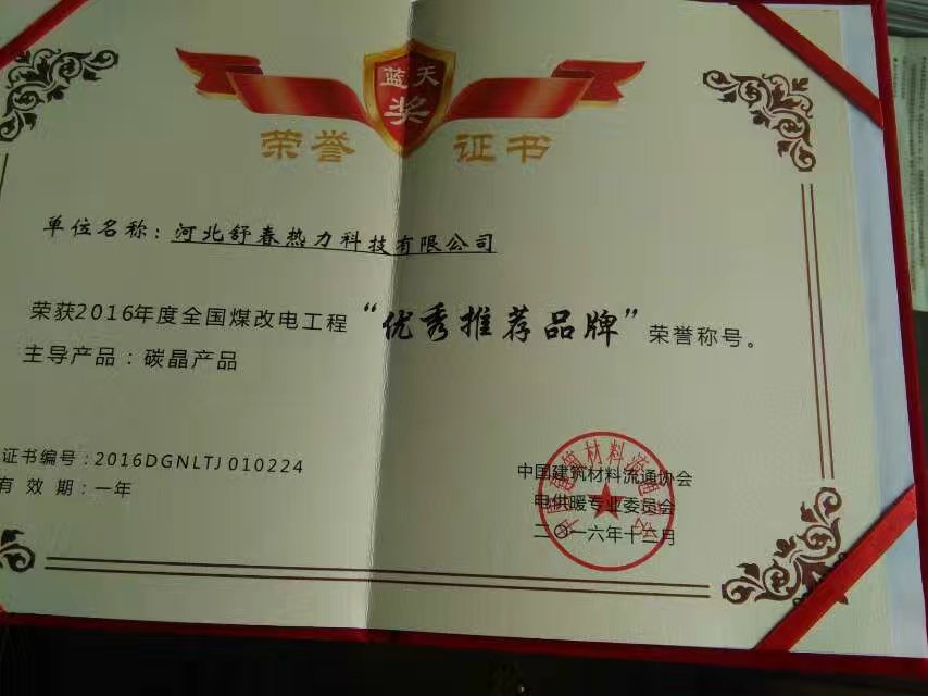 河北舒春碳晶榮獲藍天獎 ![]() ![]() |